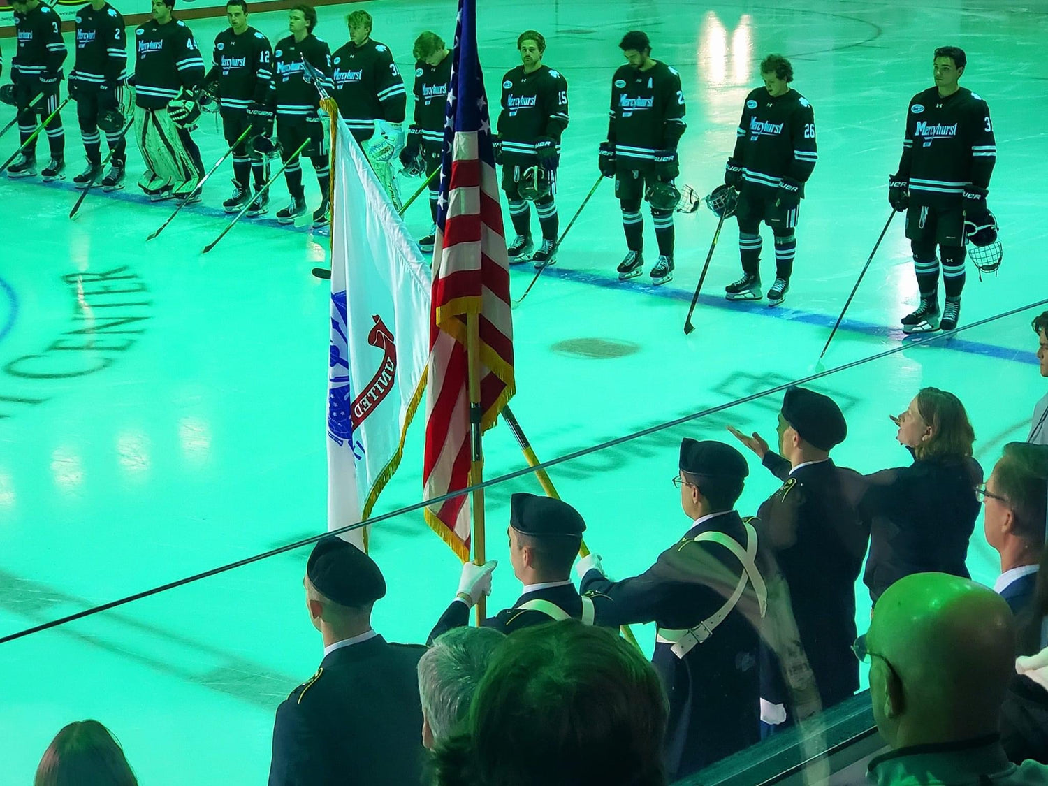 November, 2023; Cadets present the colors before the Mercyhurst vs RIT hockey matchup on Veterans Day.
